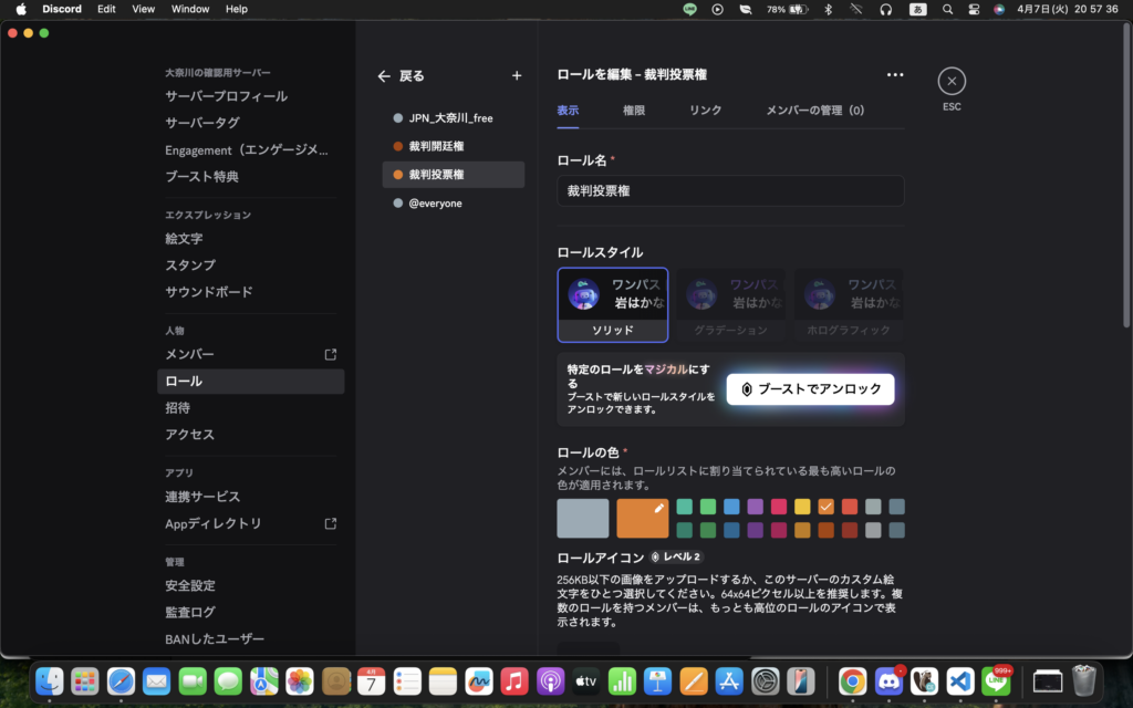 - 「JPN_大奈川_free」のロールの権限に「キック」「BAN」の権限を手動で付与してください。(BOT導入時に「キック」「BAN」の権限は求めてません)