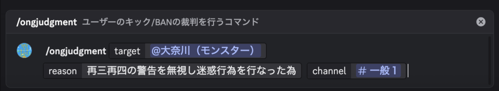 /ongjudgment 対象ユーザー 理由 通知するテキストチャンネル