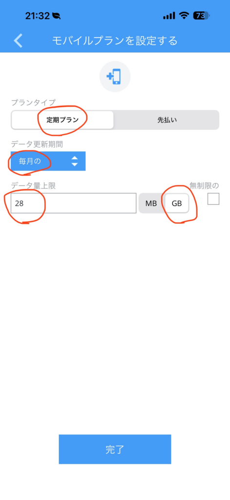 毎月28GBに設定