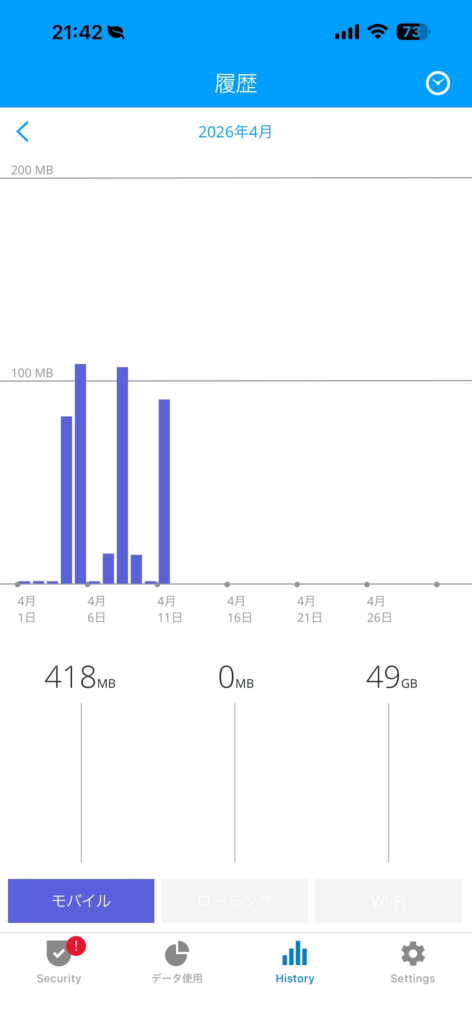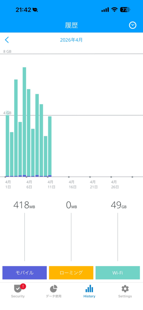 ③ 過去の通信量(履歴)が確認できる