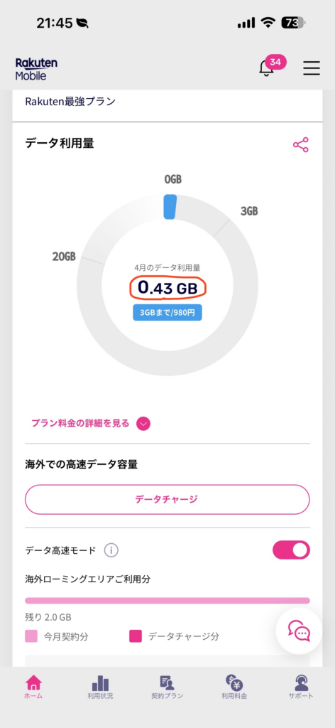 | my楽天モバイル | 0.43GB |